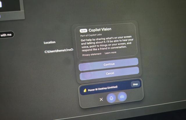 此次更新后,Copilot首页还整合了诸多常用功能。例如,用户不仅能便捷返回先前的AI对话,还可开启类似ChatGPT Canvas的“Copilot Pages”,进行文档、代码的编辑等操作。同时,全新“应用引导帮助”卡片为用户带来创新的学习体验。系统会列出近期应用(如Power BI、文件资源管理器、WhatsApp等),点击后启动“Vision(视觉)”模式,允许Copilot识别屏幕内容和语音,从而为用户提供更为直观的操作指引。这一特性需用户授权Copilot访问屏幕,授权后系统能根据用户当前界面主动提供支持。
