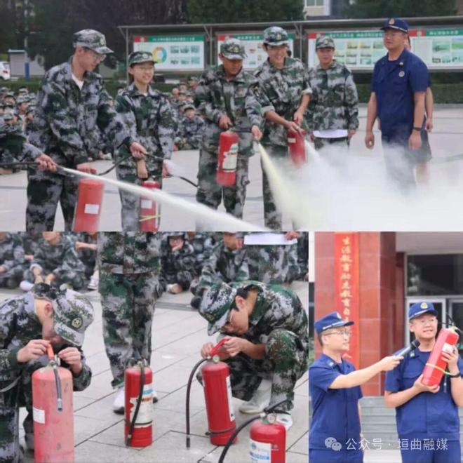 上图为消防安全操场实操环节,消防员模拟初期火情,组织师生分批次上手操作灭火器。在专业指导下,同学们熟练掌握了消防器材使用要点。