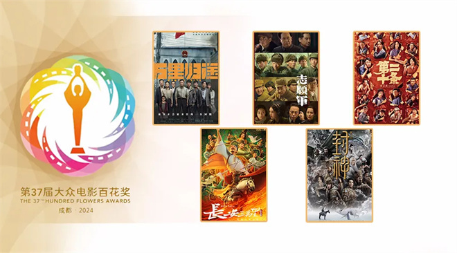 去年金鸡奖包揽最佳故事片等三项大奖的《封神第一部:朝歌风云》收获六项提名。在宏大题材中动情书写的《志愿军:雄兵出击》与《万里归途》分别以四个提名紧随其后,《流浪地球2》收获三项提名。作为提名影片中唯一的动画电影,《长安三万里》同时提名影片奖与最佳编剧两项大奖,彰显中国观众对于优质“国漫”的热烈欢迎。