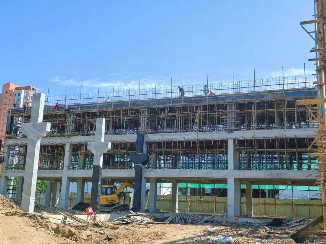 十几公里之外,教育配套项目的建设同样稳步向前。辽宁机电职业技术学院的智能制造实训基地项目也在如火如荼地推进中。该项目位于丹东新区洋河大街 30 号,总投资10590万元,地上七层、地下一层,配套建设多项基础设施。目前,地下工程已完工,地上工程已封顶,正在开展室内砌筑抹灰及外立面施工,预计 2026 年上半年完工并交付使用。项目建成后,将有效缓解学校实验实训设施不足的问题,显著提高实践教学能力,为社会输送更多优秀的机电类毕业生。